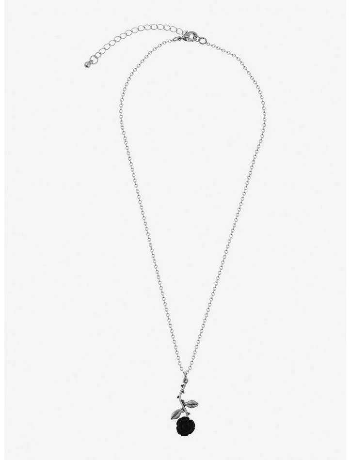 Let your jewelry selection fully bloom with this necklace! Add some romantic goth vibes to any outfit with this silver-tone necklace, featuring a black rose charm at the center.