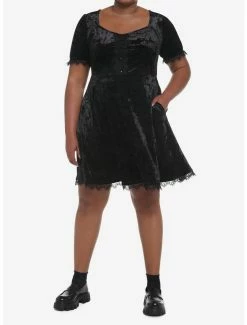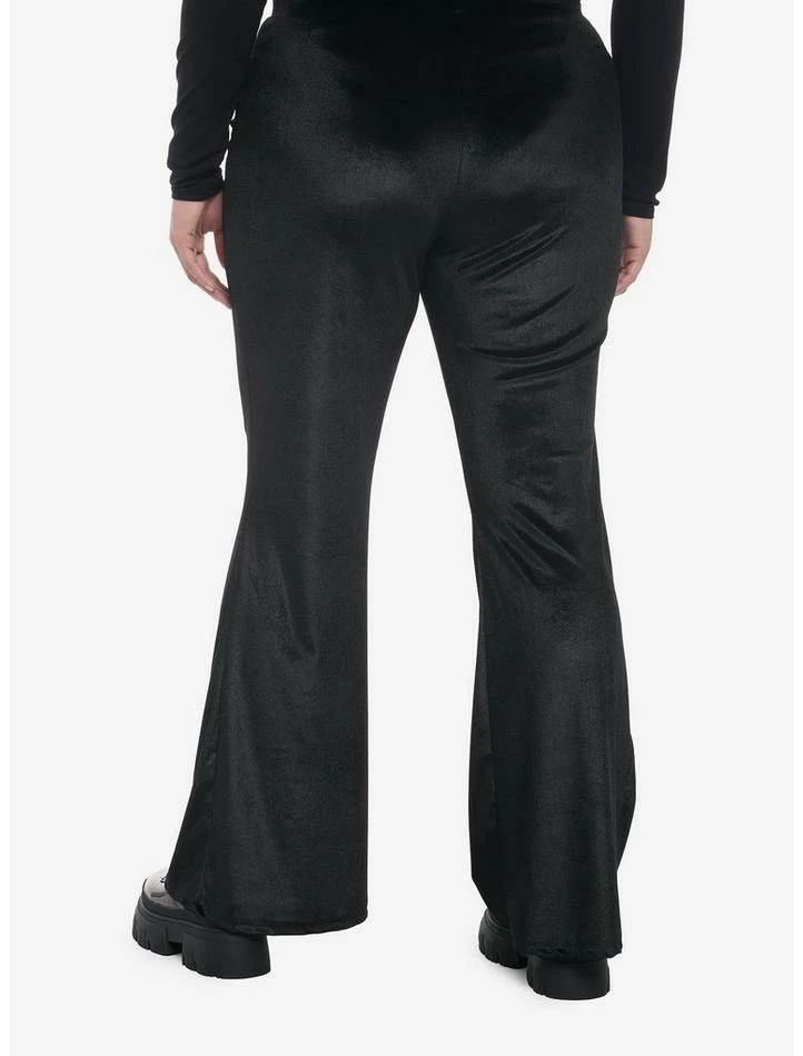 Move over, straight legs! Flares are comin’ for ya. Try these comfy flare pants in black velvet; they have lace-up detail on the hips.
