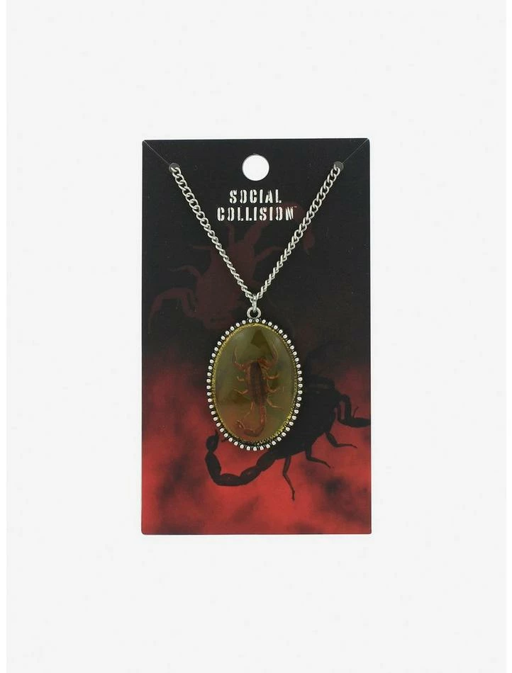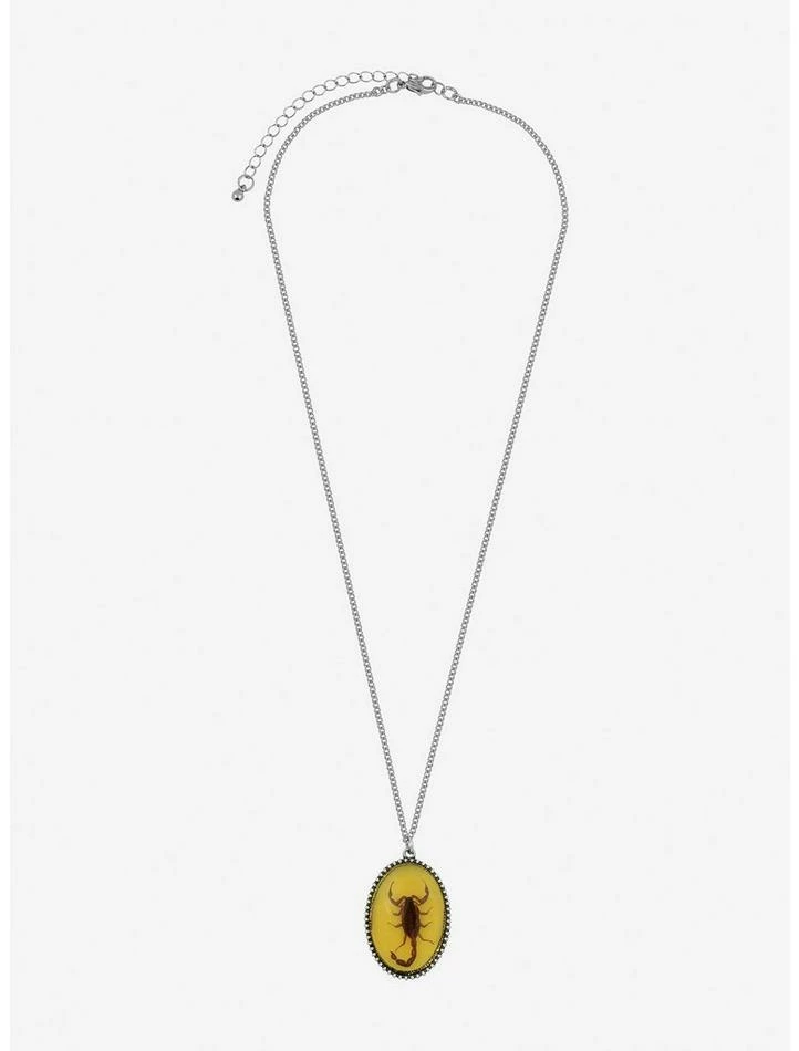 Strike fear into the hearts of your haters with this silver-tone necklace, featuring a pendant of a scorpion encased in faux amber.
