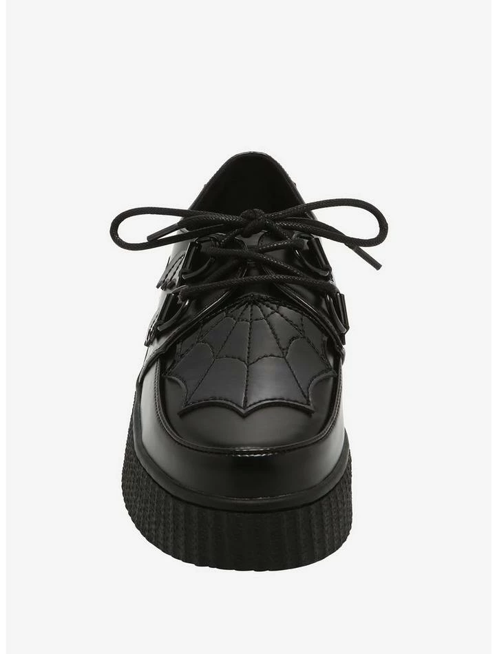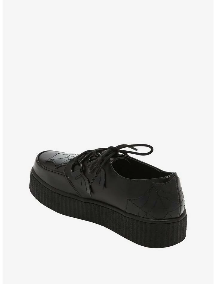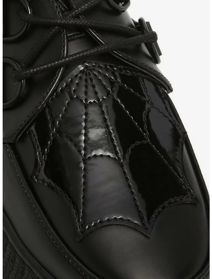 Spin a web in these black creepers! They feature spider web appliquΓ© detailing, D-ring hardware and lace-up closure.Β