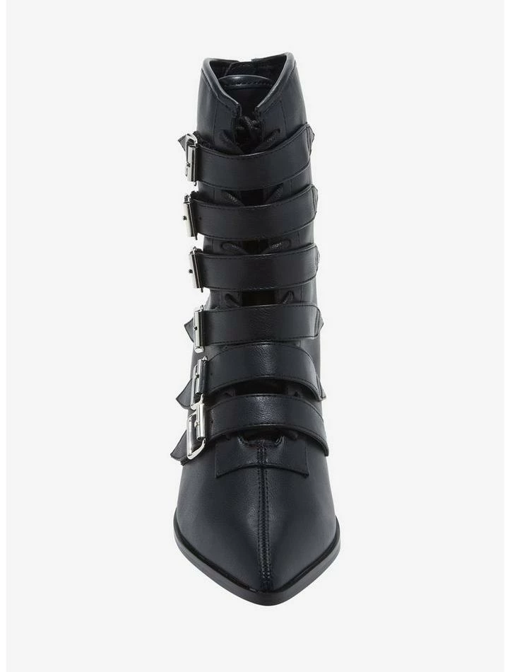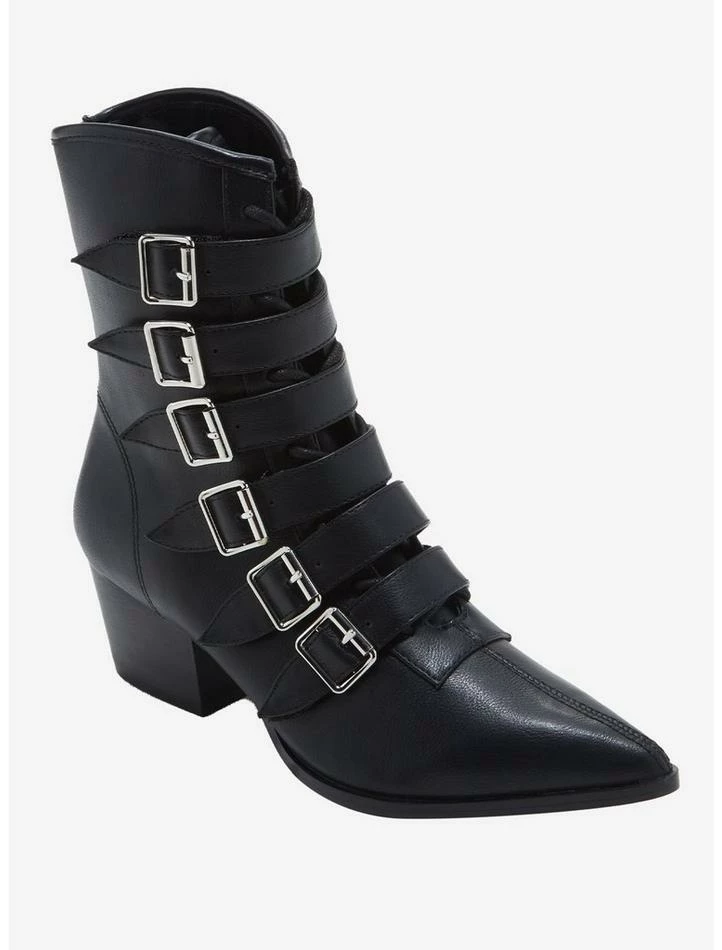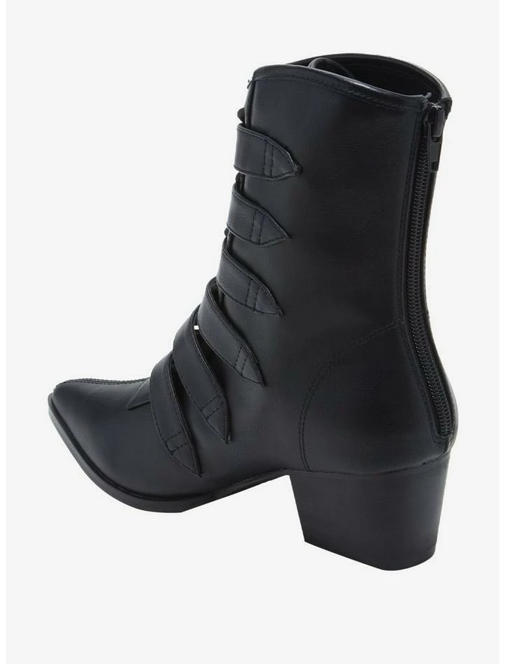 Listen up, witches! New booties are here from Strange Cvlt. These Coven Booties definitely have a witch vibe thanks to a pointed toe, fitted ankle and buckles. The buckles fasten with self-fastening tape and conceal the lace-up front.