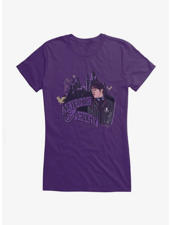 Cheapest 😍 Wednesday Nevermore Academy Crest Icons 👧 Girls T-Shirt 😀